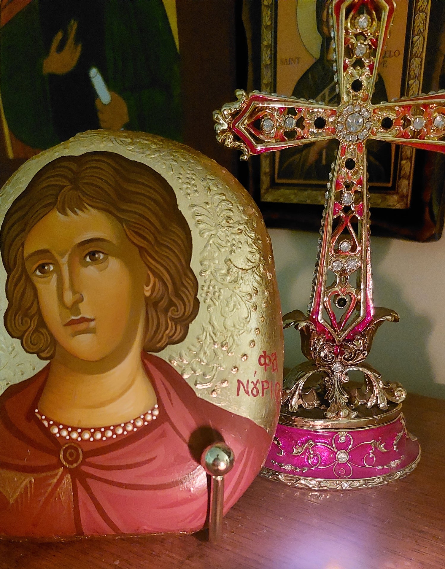 My baptismal name is in honour of the marvellous St. Phanourios - whose intercession I’m always in need of! I’m a convert to the Orthodox Christian faith, a lifelong stitcher, and an occasional Prosphoro baker.